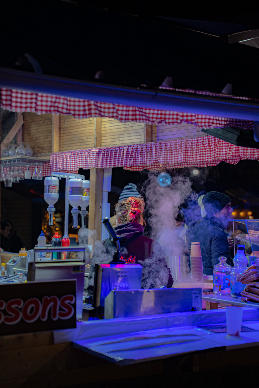 Les photographies témoignent de l’atmosphère unique du Marché de Noël, entre effervescence urbaine et moments plus intimistes, propres à la période de Noël.
