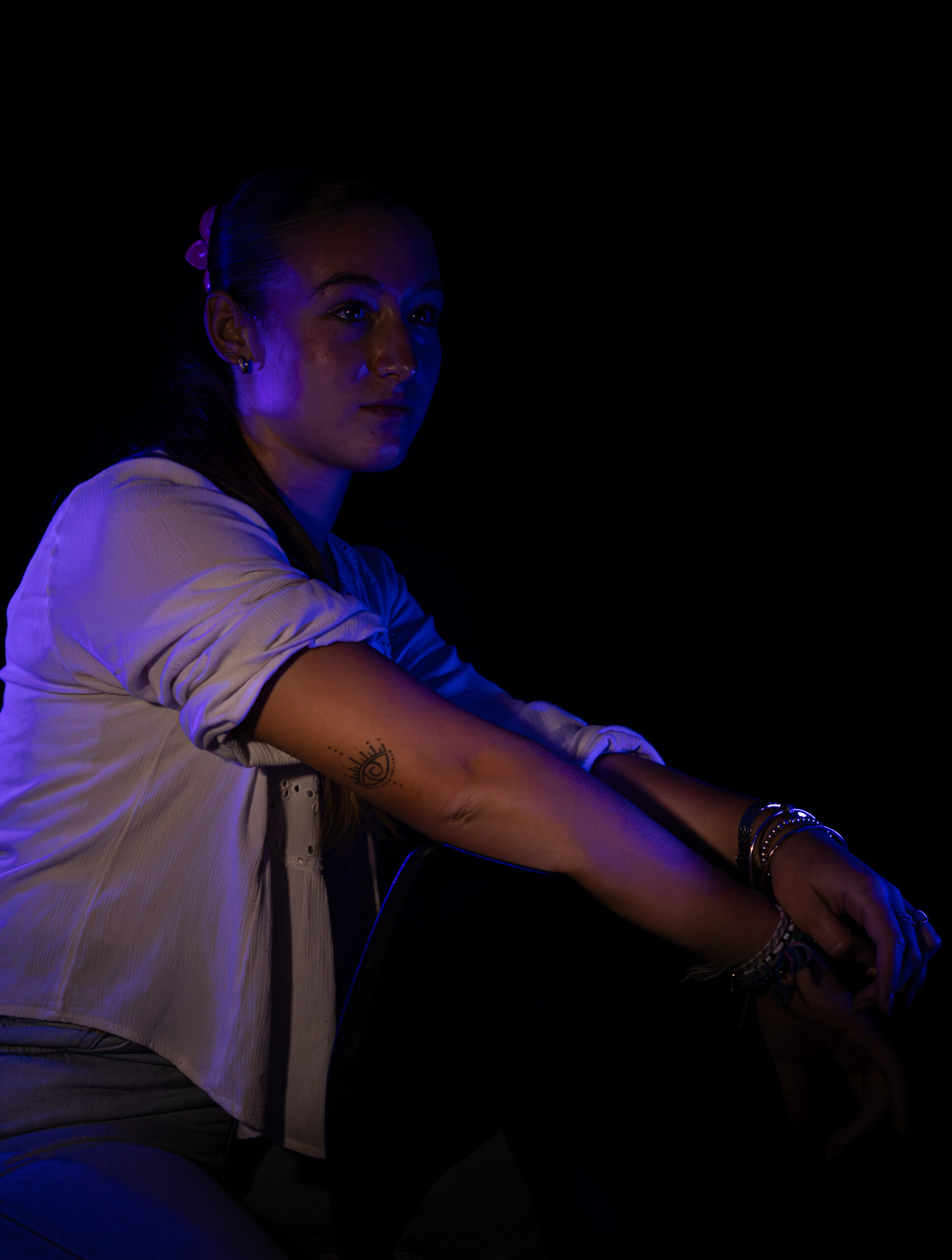 Chaque portrait présenté dans ce reportage associe une personne, un tatouage et une expérience de voyage. Les tatouages photographiés ne représentent pas nécessairement un symbole national ou un drapeau précis. En revanche, le travail de la couleur et de la lumière s’inspire des pays évoqués par les modèles. Les éclairages colorés font ainsi écho aux territoires traversés, tandis que le tatouage raconte une histoire intime, personnelle et vécue.