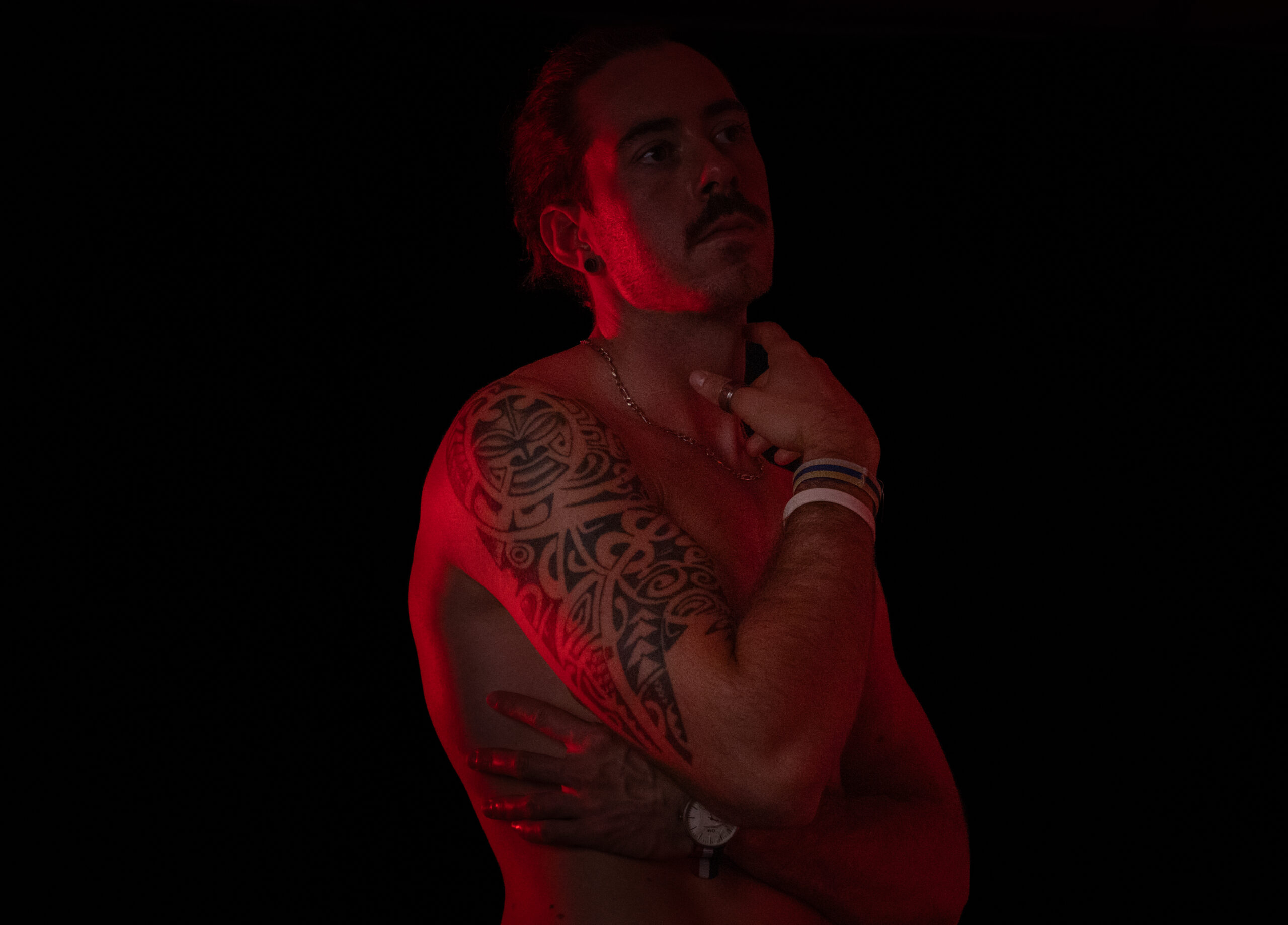 La direction artistique du projet repose sur un travail approfondi de la lumière et de la couleur. Chaque portrait a été pensé pour créer une atmosphère visuelle cohérente avec l’histoire du tatouage photographié. Les éclairages colorés permettent d’évoquer les pays, les paysages ou les ambiances culturelles associées aux voyages racontés.