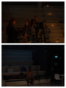 En plus de la coordination, j’ai été directement impliqué dans la production. J’ai occupé différents postes selon les besoins : cadrage, gestion de la lumière, préparation technique de certains dispositifs, montage, mais aussi réalisation sur la partie fiction. Cette polyvalence m’a permis de rester connecté à la réalité du projet, et pas seulement à son organisation.