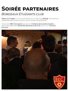Les commissions communication et partenariats du club ont également contribué à l’organisation de la soirée, avec l’implication de plusieurs membres engagés dans la vie associative du BEC.